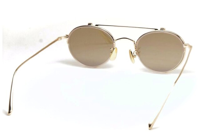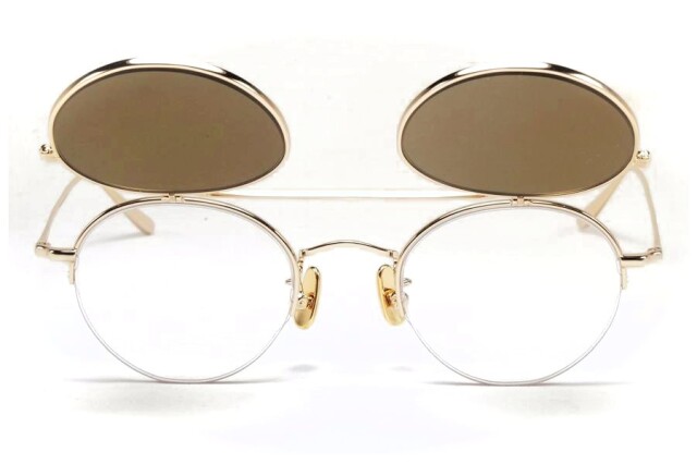 サングラスの前枠を撥ね上げればゼロカーブレンズのオーセンティックなボストンシェイプで、シンプルかつ個性的な魅力のデザイン。