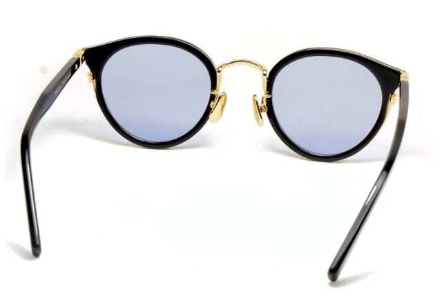 玉型をアセテート素材とメタルで挟み込んだデザイン。