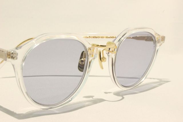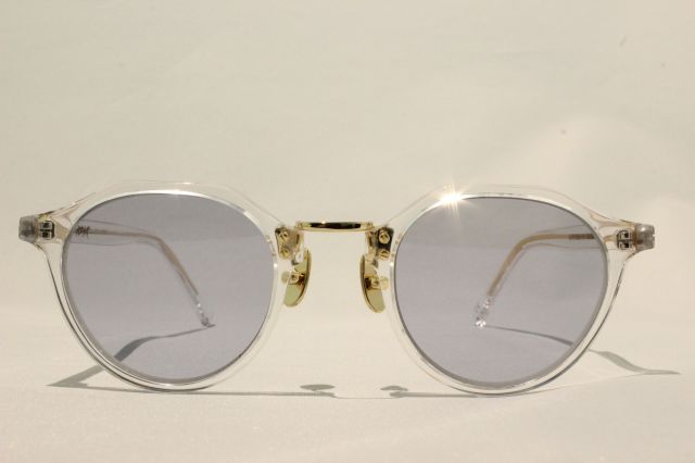 フロントの構造はヴィンテージモデルとしても人気なメタルとセルのコンビネーション、フレーム上部を角張らせた特徴的なエッジが効いたボストンタイプ[ SATCHMO ]。0カーブのライトブルーレンズを使用することによって、まさにクラシックかつモダンなA.D.S.R.らしいデザイン。
