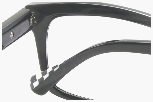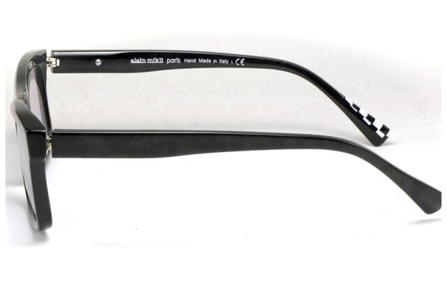 右テンプルの先にチェッカーフラッグ柄が施されアランミクリらしさを主張しています。