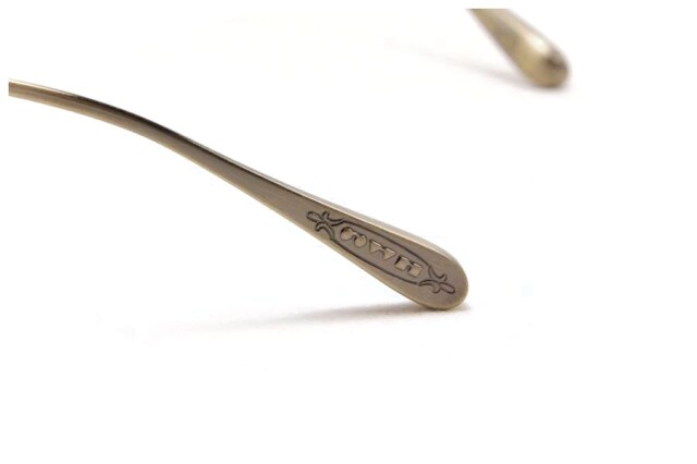 繊細な彫金が高級感を高めつつ、使用キズや小傷など目立ちにくくしてくれる面もあります。細部まで作り込まれた日本製のメガネです。
