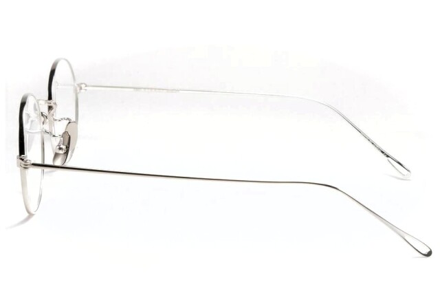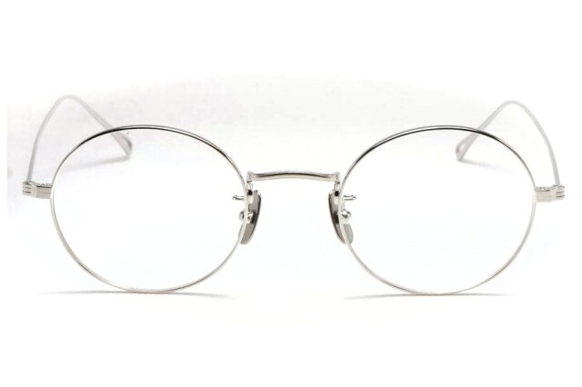 オーバルとラウンドに中間のようなシェイプのオールチタン製メガネ。