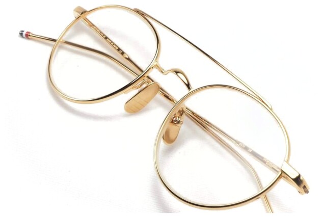 オールチタン製でレンズシェイプはオーバル、ツーブリッジが印象的なトムブラウンを代表する1本。