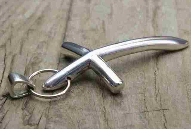 湾曲したクロスのペンダントトップは中が空洞なので軽く仕上がっています。