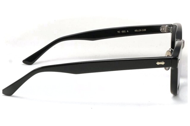 こちらのYE-001のフロント部分はヴィンテージのタートオプティカル(ジョニーデップの使用で有名)のフレームから型をとり、耐久性、かけ心地などを考慮し日本の鯖江にて職人が一つ一つ丁寧に作成しています。ジェームスディーンがかけていた眼鏡にも付いていたダブルダイヤモンドという飾りが採用されています。モスコットのレムトッシュに似たフレームデザインですが、より日本人向けに改良されています。